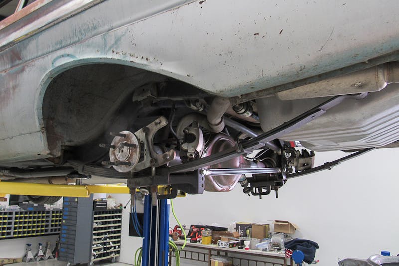 A 1964 Ford Falcon’s suspension isn’t very technologically advanced, so IPT busted out the big tools and got to work fixing that problem. Suspension parts from Total Cost Involved were grafted onto the Falcon. Mair Racing drop leaf springs and subframe connectors were also folded into the build plan. Jon sends steering orders to the Mustang rack and pinon through an IDIDIT tilt column.
