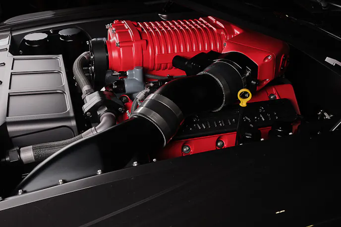Under the hood of the Mustang, you’ll find the supercharged 5.4-liter mill from the GT500. A Holley Dominator ECU controls the engine. Bowler Performance Transmissions supplied the TREMEC T-56 transmission that’s been paired to a Tilton clutch to put all that Ford horsepower to the ground.