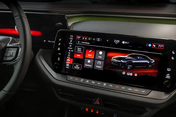 • Drifting and donuts: Charger Scat Pack’s class-exclusive rear-wheel-drive mode sends 100 percent of torque to the rear wheels, delivering effortless drifts, smoky donut spins and pure driving exhilaration on demand