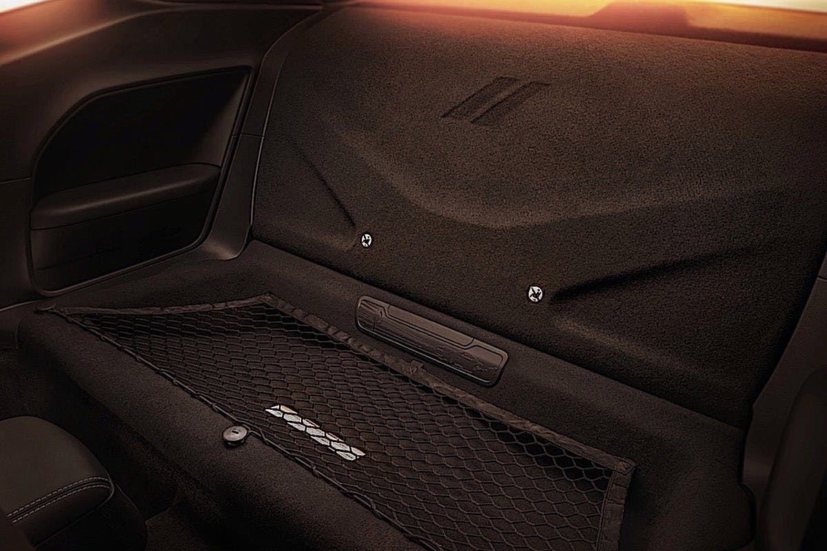 We see the front suspension is lightened, the passenger seat flashes, and parts of the body flash, around the door and roof. The rear seats flash, and a few other components, but still – no numbers. The passenger mirror flashes, but the Demon pics all show a mirror, perhaps it’s not heated or electronic, because who needs that stuff when you’re drag racing? The weight reduction was said to be about 200 pounds.