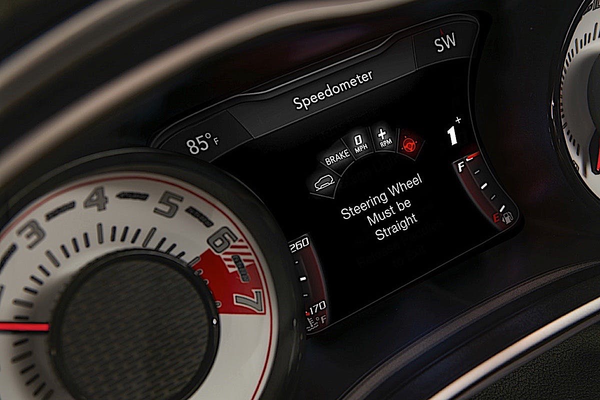 Here we get to see that rumored “Race Gas” button for the first time and it’s simply labeled “HO” with the graphic of a gas pump. This screen also had everyone jumping on the bandwagon that the Demon could be the ADR (American Drag Racer), with a PCM change that is part of the crate kit. Is the Demon the ADR? So far we haven’t seen anything, and our source who told us 850 horsepower also told us that the ADR is a separate car, and that it replaces the Drag Pak and will be over 1,000 horsepower. That we can believe, but for this video, we’re left with the driver filling up with the same green liquid that the Hellcat bit into in the first video.