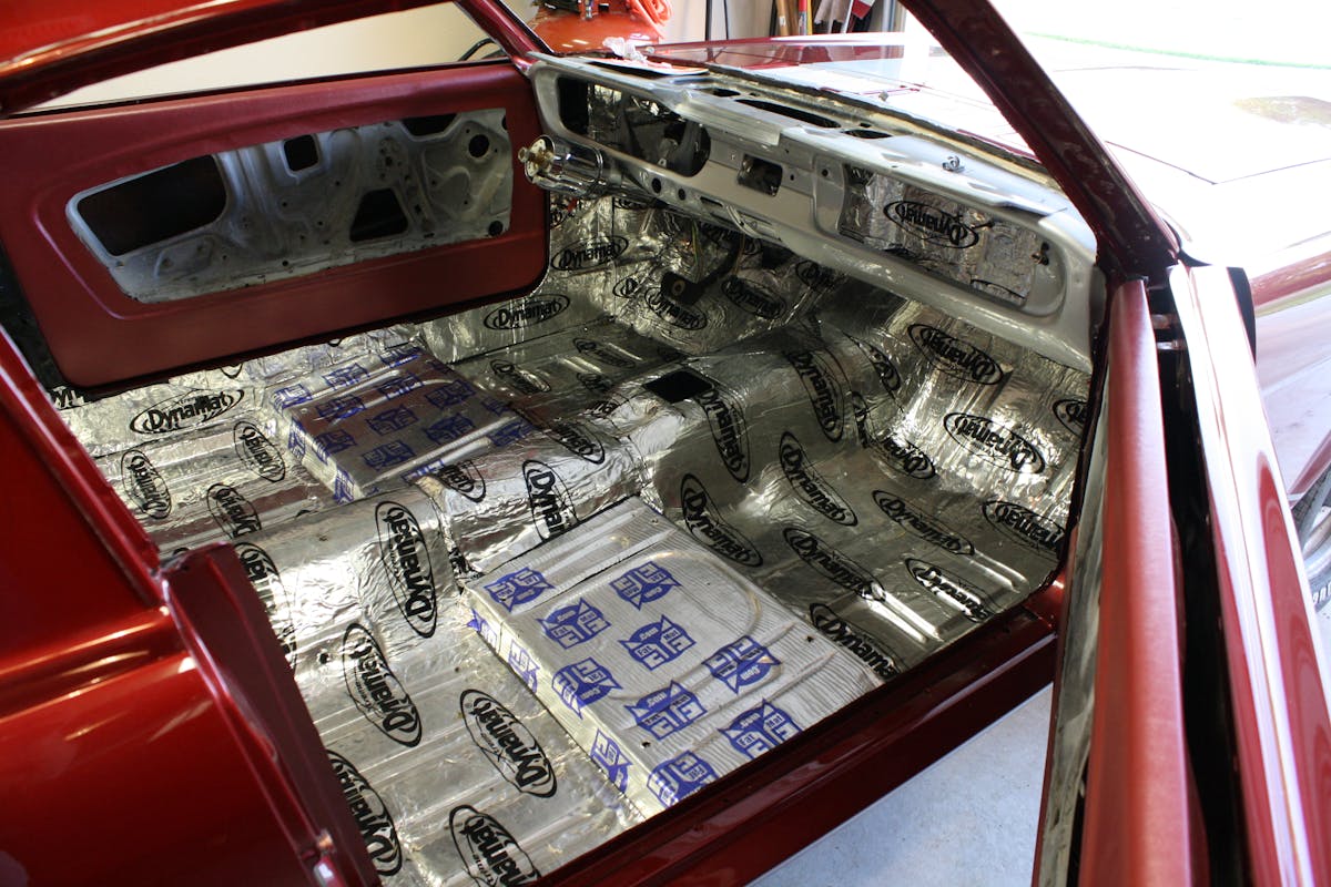 TMI Upholstery sewed up the custom interior. Close review reveals the silver inserts sewn to match the dash and racing stripes. You’ll also discover matching hand-sewn TMI vinyl covers every panel of the car, including the doors for a much more luxurious feel. FatMat lives beneath the carpet from Auto Custom Carpets while Kool Mat insulation takes the heat.