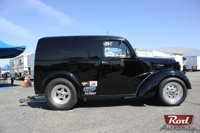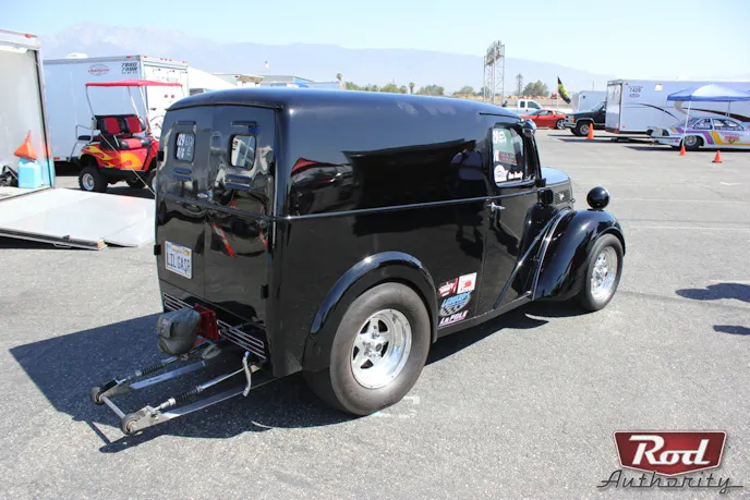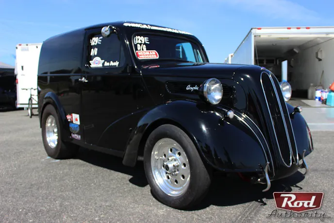 “The Thames panel trucks looked exactly like this from 1948 through 1954. This vehicle is the panel truck version of the Anglia sedan. It’s the same front end only the doors got shorter and obviously it has a truck back end. These models are a little harder to find because most of them got turned into little delivery trucks and junked. The ones that were at the drag strip usually got crashed and on top of that there were never as many of these as there were sedans,” Ron told us. He continued, “This thing will usually run 10.30s with the throttle-stop off and I run 10.60 index in other associations.”