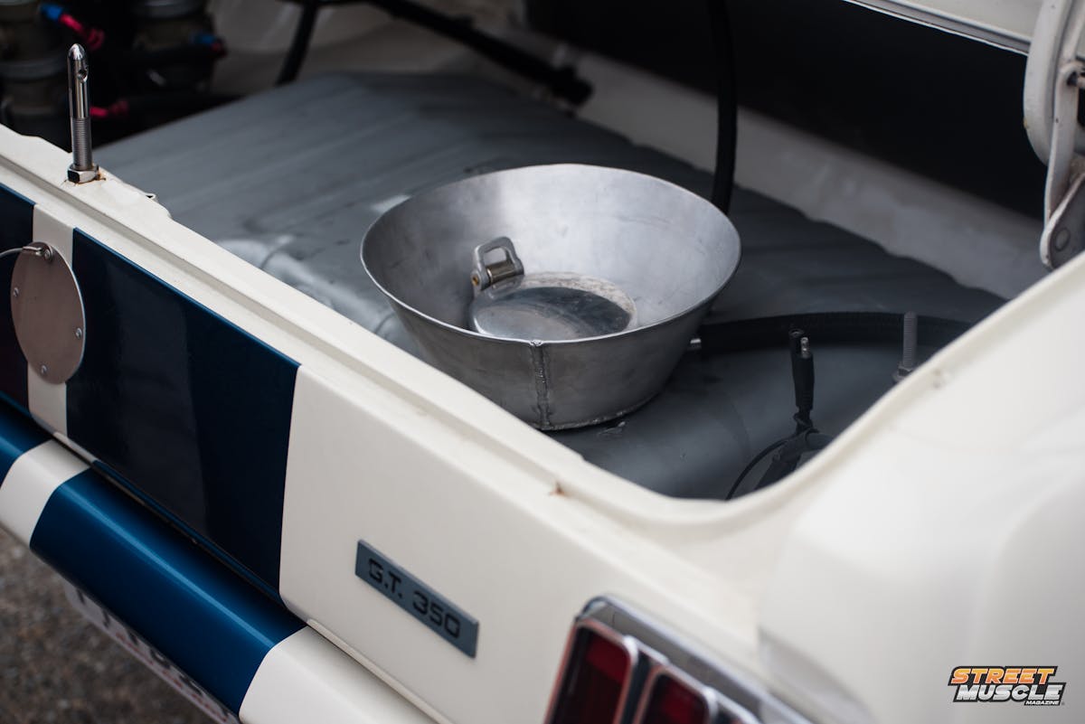 During a walk around, he showed me the hand-welded plenums fitted over the gas tank filler in the trunk and fitted over the carburetor. He noted the person who created the original pieces in the 60’s is the same person making them now, using the same method and tools.