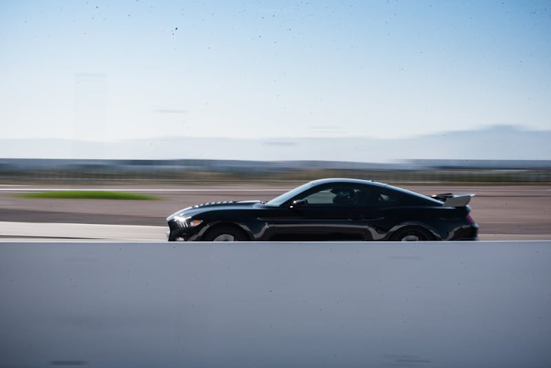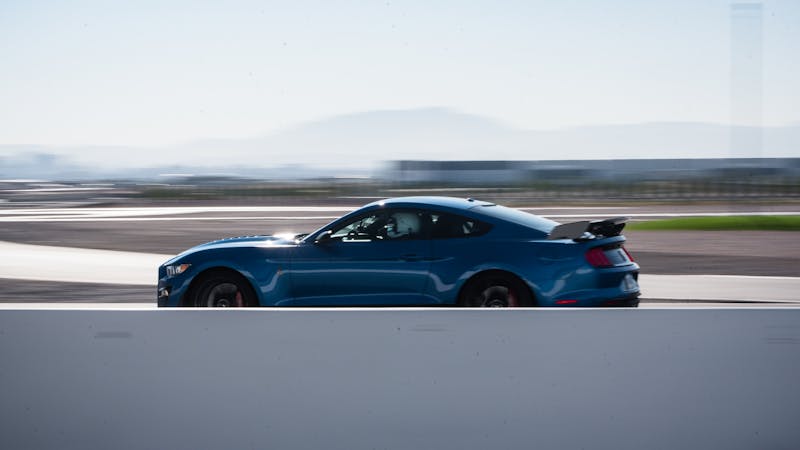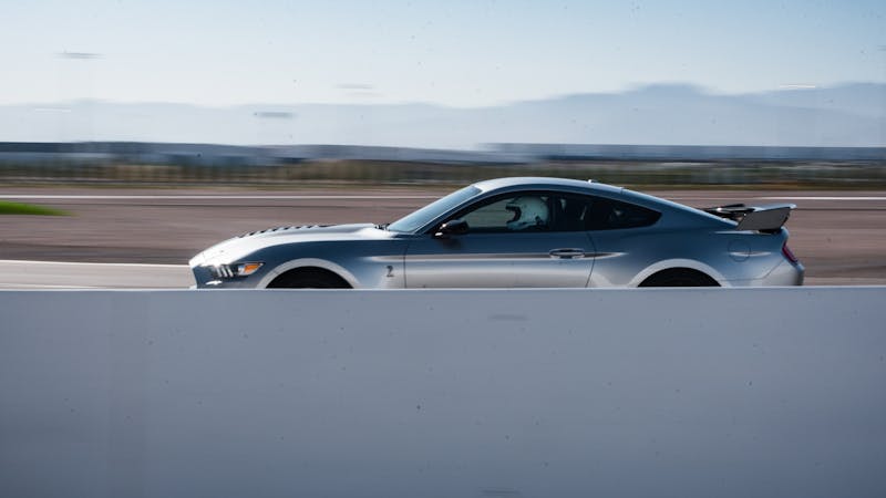 With Thompson at the wheel, the GT500 was nothing short of impressive. The grip through the corners was unworldly. Thompson kept the car balanced on the edge of grip, barreling through the turns with the tires screeching.