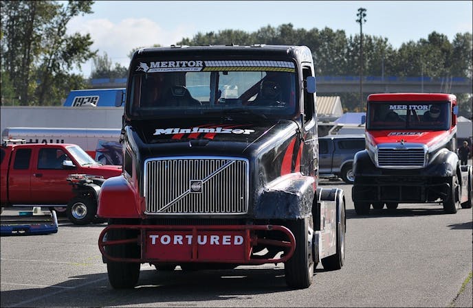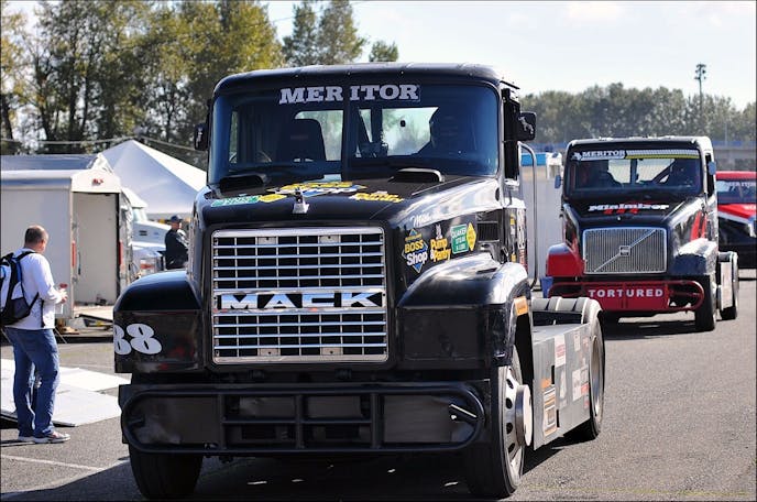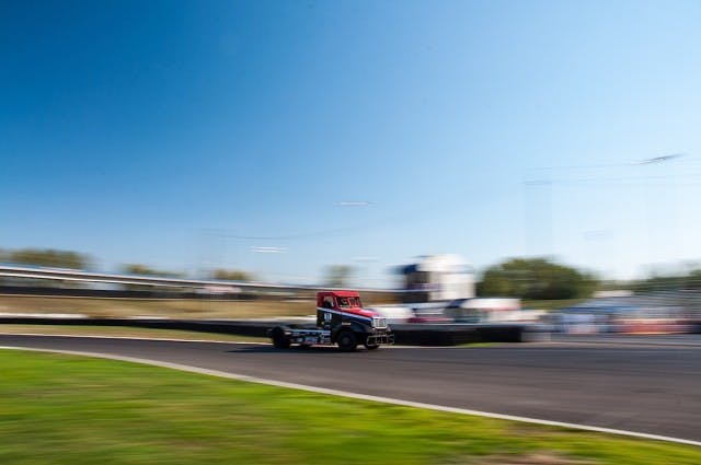 Not one to ever shy away from a challenge, I was feeling far more confident behind the wheel of the No. 11 Optima Freightliner than ever and it was time to line up on the grid for the first of seven planned races set for the weekend. You have heard all the sayings and have seen all the memes; when the green flag drops all other nonsense goes out the window and after once around the horn on PIR, it was time to get serious.