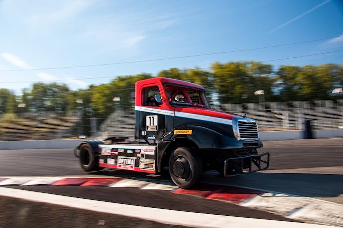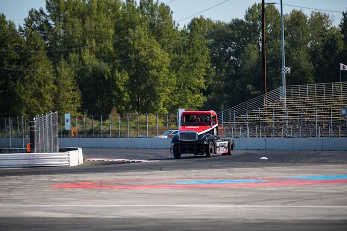 They warned me ahead of time that I would mostly be slowing down on all of the controls and letting the truck be a truck and not a sports car, and it was a good thing: not being overly assertive and quick with feedback. I worked on adhering to the racing line, adjusting to the braking needed to haul in close to 14,000lbs, and powering out of corners with massive turbocharged diesel torque.