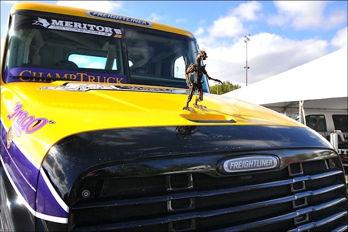 The rush of driving this self-named “Racing Rhino” for the first time was so intense, I couldn’t focus on anything else, including how to sort out how to shift a 10-speed splitter transmission that was anything but forgiving. By the time I finished my first practice session of the day, I could barely stand to hear those gears grind away even once more. And since my experience behind the wheel of a big-rig to date was moving one 40 yards, I also felt very rushed to learn, so it was time to start talking to the ChampTruck crew.