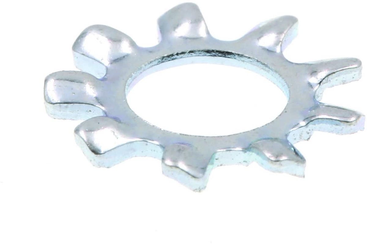 Star washers serve almost the same purpose as a split washer. They are intended to prevent a fastener from loosening. These are washers with serrations that extend radially (inward or outward) to bite into the surface of the component. By design, they are supposed to “dig in” to the bolt head/nut and the substrate to prevent the fastener from loosening. Star washers are typically used with smaller bolts and screws associated with electrical components.