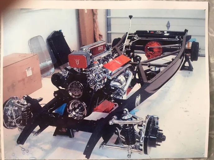 Looking good now, the body was removed from the stock chassis and set atop a new Morrison chassis.