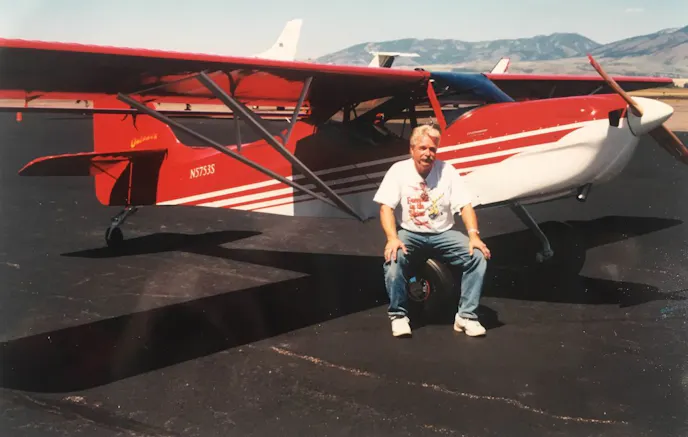 Jerry poses beside the airplane he built before he got into hot rods and fifties cars.