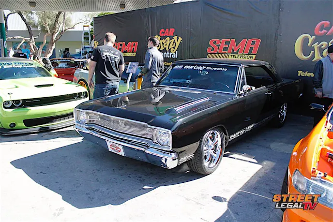 Finish Line began the build about a year and a half ago, with the goal to take the Dream Dart to SEMA and be a part of the Car Crazy car show with Barry Meguiar. That meant stripping the car down to a bare metal shell and and doing all the repair work on the original sheetmetal.