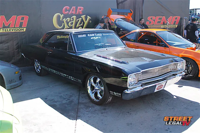Finish Line began the build about a year and a half ago, with the goal to take the Dream Dart to SEMA and be a part of the Car Crazy car show with Barry Meguiar. That meant stripping the car down to a bare metal shell and and doing all the repair work on the original sheetmetal.