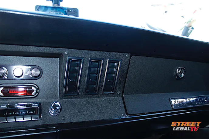 Dakota Digital VHX gauges reside in the custom dash, with Vintage Air climate control keeping the occupants comfy. On the dash is a Billet Badge Dream Dart badge dedicated to the build, and Car Toys came over to install the 1,500+ watts of thump with a Custom Autosound USA-630 stereo and Kicker sound system.