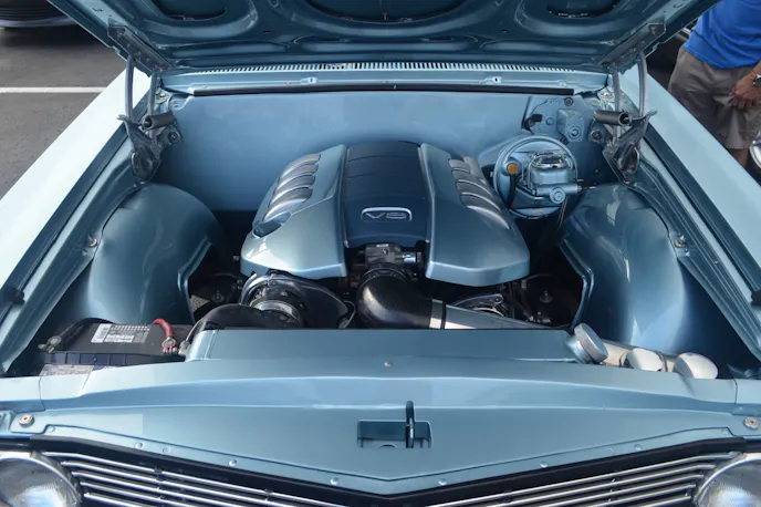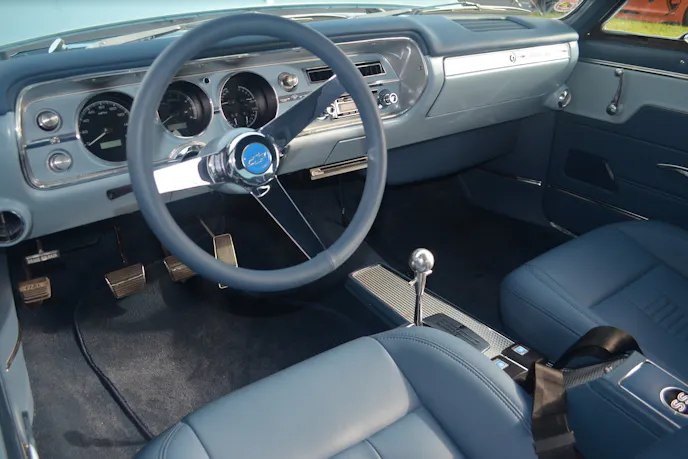 At first glance, Clearwater resident Jennifer Kuehn’s 1965 Chevelle Malibu SS appears to be mostly stock, even the original four-speed shifter and clutch pedal are where they’re supposed to be. But, open the hood and you’ll find that the original 327-powered four-speed car is packed with late-model muscle. The LS1 5.3-litre V8 pumps out 400-plus horsepower that’s fed through a late-model GM automatic transmission to a rearend that features coilover shocks. Four-wheel disc brakes and tubular A-arms up front, too. American Racing Legend wheels complete the modern look. The custom interior mimics the original stock look. The original floor stick shift has been modified to control the automatic. The clutch pedal is just for looks.