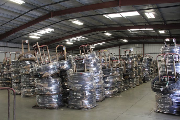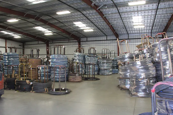 The raw materials are stored in a 9,000-square-foot warehouse near the manufacturing plant. Making these coils of wire, or steel bar stock, into fasteners begins by moving the material into the plant, then starting the hot and cold heading processes. This is where the material is shaped into the rough form of a bolt with the bolt head and shank.
