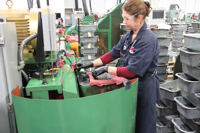After the nuts have been threaded, they go to metal finish for either black-oxide coating for the Chromoly, or the polishing station for stainless steel nuts. Watching the process, it was evident that making a nut was far more complicated than making a stud or bolt.