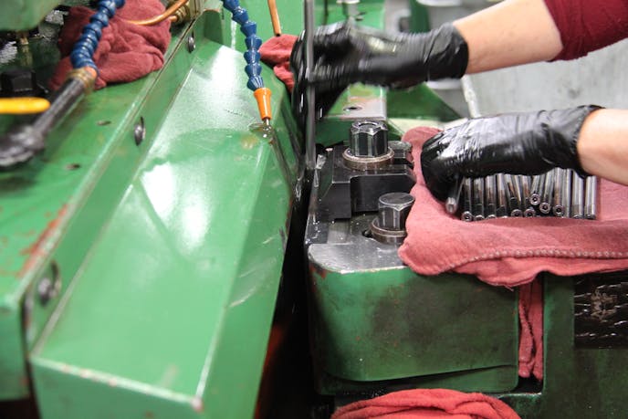 The other half of the fastener equation is slightly different. When it comes to manufacturing the nuts, ARP’s manufacturing process is another multi-stage process. The raw material is loaded into a huge forming machine that makes blanks of hex and 12-point nuts.