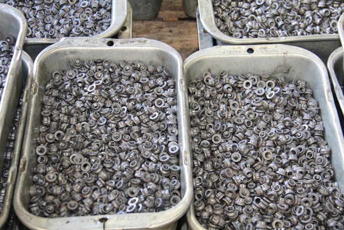 After the basic form of the fasteners is complete, the blanks are subjected to the heat-treating process. The fasteners are loaded onto a rack and put into a furnace — an Internal Quench Furnace to be exact — where the operator heats the fasteners to a set temperature for a specific time. The time the material spends in the furnace is part of the chocolate chip cookie recipe Raschke referred to earlier.