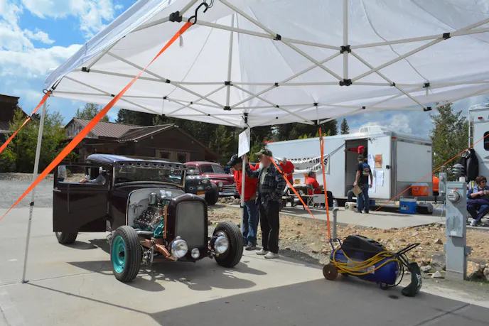 Converging on the historic mining town of Central City, famous for its many casinos and proximity to Black Hawk, which is Colorado’s most well-known gambling destination. The rodders spent the rest of Friday afternoon chatting with fellow enthusiasts, getting the lay of the land. Most had their cars tech inspected, checked into their hotels or camping spots, and picked up their registration packets for Saturday’s Hill Climb. That evening, drivers and their guests were invited to a special VIP kickoff party at host hotel, The Reserve.