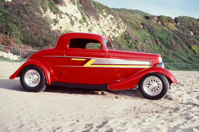 Other defining features of the car include a 3-inch chop, custom 3-piece hood built by Steve Davis, ’34 Ford headlights, classic ’39 Ford teardrop taillights, and of course, the iconic red paint scheme with custom “ZZ” graphics, designed by Kenny Youngblood. Under the hood, you’ll find a So-Cal Speed Shop-built SBC 350ci V8 with a single four-barrel carburetor, tied to a Turbo 350 transmission for reliability sake. And yes, that means the car is more than just a show piece.