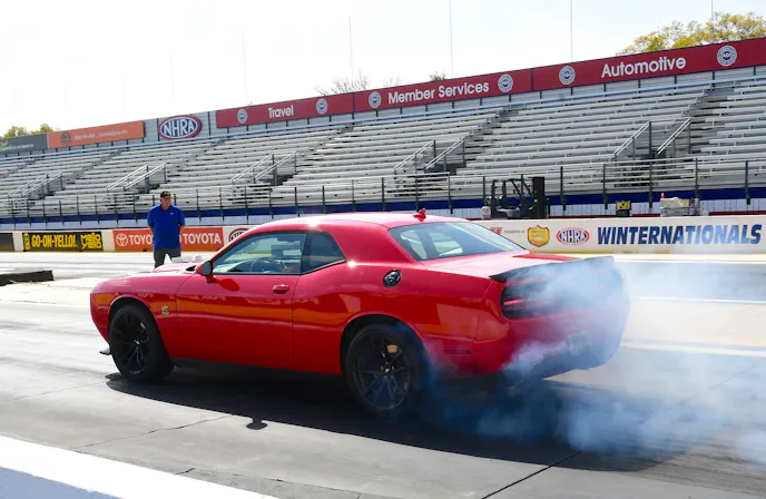 Then there’s Line Lock, which engages the front brakes to hold the Challenger stationary but leaves the rear wheels free for a burnout to heat up and clean the rear tires. The system also enables the driver to perform a controlled rolling burnout and can engage for up to 200 rear wheel revolutions.