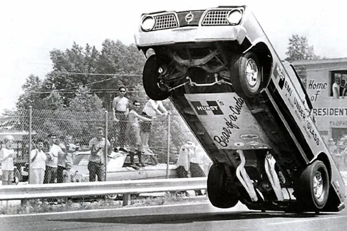 But the car did something they didn’t expect, and the crowds went absolutely nuts about it. Bob shared driving duties of the Hemi Under Glass with “Wild Bill” Shrewsberry, and was also the mechanic. They were able to get the car to wheelstand coming off the line, and they couldn’t keep the front end of the car on the pavement. When Shrewsberry left the team, Bob became the sole driver and wowed the crowds with that famous wheelstand.