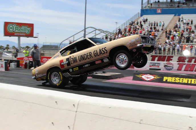 We witnessed the final wheelstanding run at the Muscle Cars At The Strip (MATS) show this past March in Las Vegas. You see, the Hurst Hemi Under Glass first entertained us over 50 years ago, and although the Barracuda has gone through some changes over the years, the one constant (for us, anyway) has been car owner/driver Bob Riggle. We got a chance to sit down and talk with him about his iconic car, his career, and the recent close call that everyone’s been talking about with Jay Leno as his co-pilot.