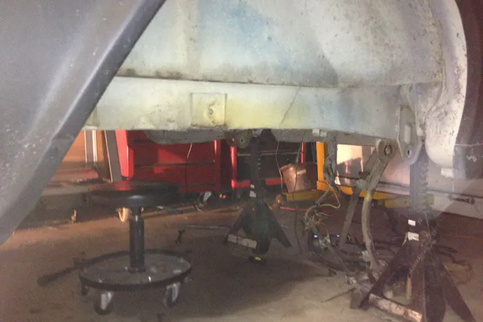 There was still a good bit of trial and error, especially around the wheelwell tubs. One smart thing Brian did was setting the cross-braces at four inches off the floorboard height. This meant that once the cutting for the channel was done, the body rested evenly on the floorboards, so the braces served double purpose for him: they kept the body square while cutting and channeling, and they also acted as a jig to keep the body in alignment while welding everything back together. After adding filler panels and smoothing over the welds, this part of the project was mostly complete.