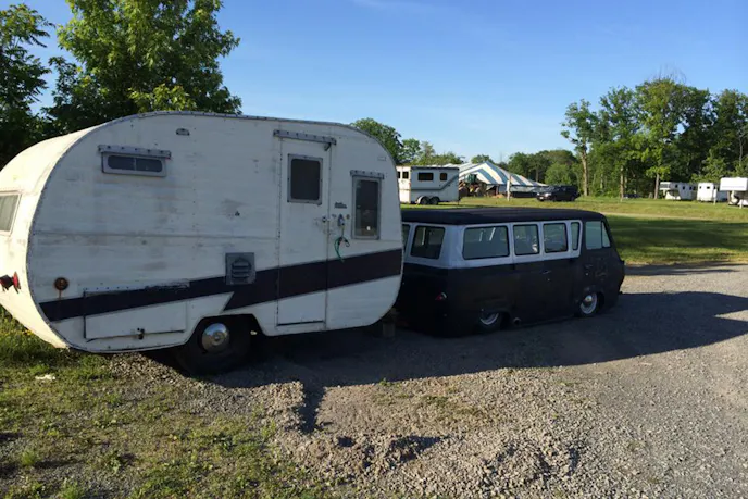 SlammedHam is Brian’s name for this 1957 Mercury Travel Trailer and the name fits perfectly. Look at it and you’ll understand why he calls it SlammedHam. Brian completely tore the trailer down to lower it and then installed air bags. When he lowers the air bags, the body of the trailer rests on the ground, which is slammed and the shape of the trailer is reminiscent of the tins that canned ham comes in; thus SlammedHam.