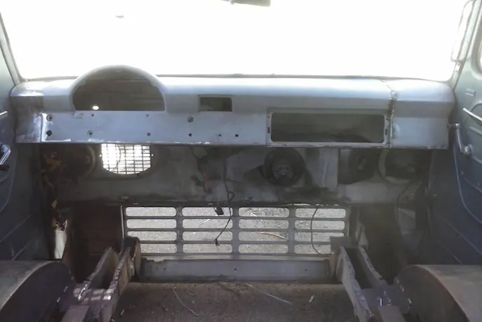 As much as possible, he used the original dash switch knobs to control the air ride system, so there’s no ungainly control box on the dash. Once the system was up and running and tested, he built another steel cover over the valving and air manifolds.