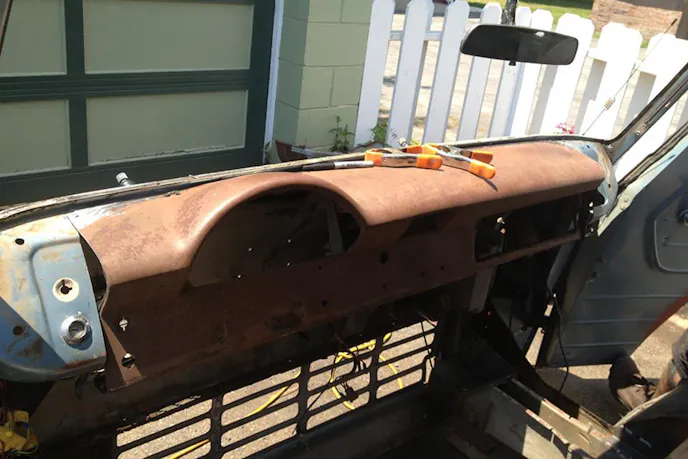 Brian had help from his sons when it came time to put the interior together. Max and Myles helped him trace the door panels and such on chipboard. He used these patterns to cut the vinyl coverings and then sewed them together himself. He recently installed new custom seats using the original 1966 Medium Blue Vinyl.