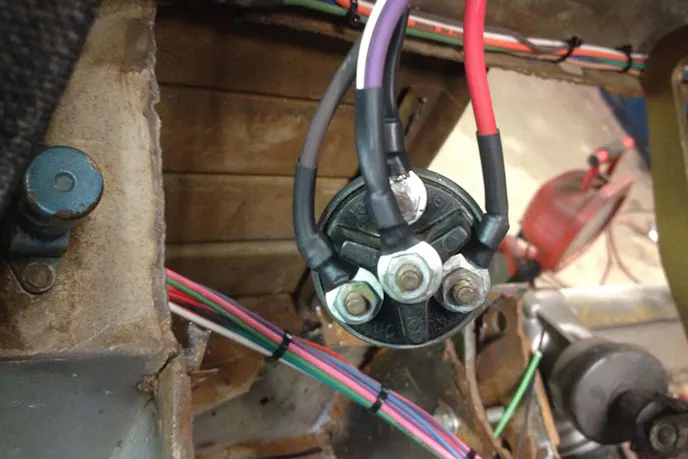Brian fabricated everything for the front and rear airbag systems. Sure, he bought the air tank and compressor to install, but all the lines, wiring, brackets, and mounts were fabbed right there in his home garage/shop. Once he had all the bags mounted front and rear, with the compressors and tank installed in the rear, he ran the air lines and wiring. The original valve and solenoid installation worked for him, but he later decided to take those out and installed Parker products instead.