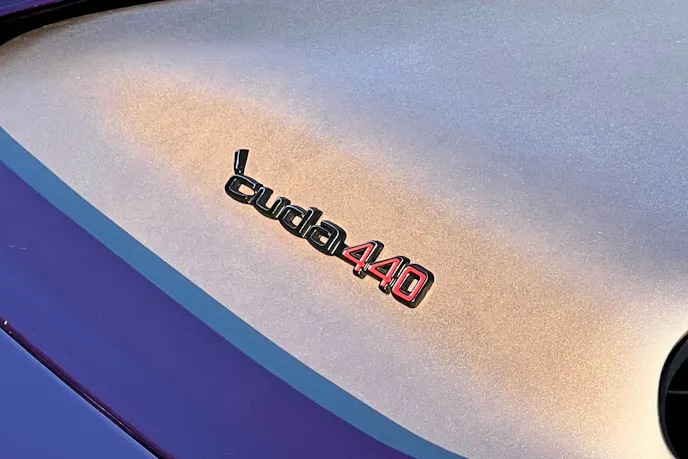 Jeff’s favorite part of the ’Cuda is the overall look. He likes both ’Cudas and Challengers — every little feature they came with, including the Shakers, the stripes, the rocker gills — he feels that’s what made them special