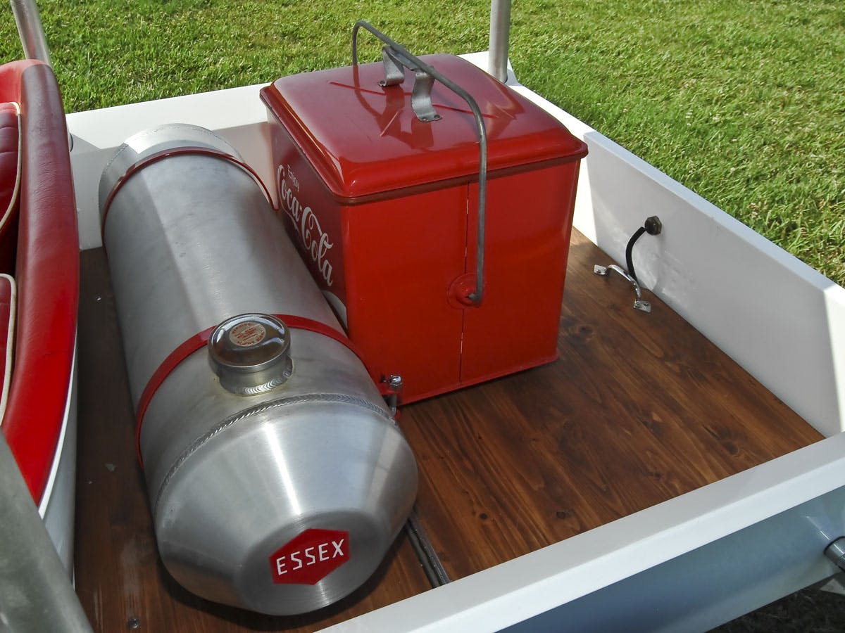 Joey’s Essex is all steel and is a true testament of Cecil’s fabrication skills. The body displays no unfinished edges, unsightly rivets or spot welds, and its rear box has been completely hand-fabricated with a form and fit that is second to none. A 12-gallon stainless-steel fuel tank is mounted directly to the bed, which is made of hand-fitted, stained and treated pine boards, as well as the antique Coca-Cola cooler that Joey said “is still very functional.”