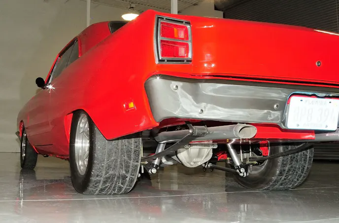 Although the car drove out good, Burpee had other plans for his newest acquisition. This car would be the car of his dreams, that bright red Hemi Dart with the chrome wheels and scooped hood. He entrusted Dave and Andrew Stephens, the owners of NBS Performance and Fabrication in nearby Pinellas Park, Florida, to do the complete frame up restoration – or in this case, a frame up transformation.