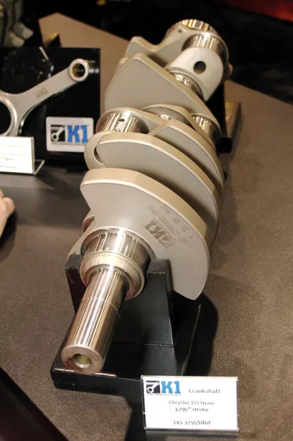 That’s where K1 Technologies comes into the picture. Their forged 3.795 stroke EFI HEMI crank is designed with blowers in mind, and takes the 6.1L Chrysler out to 392 cubic inches. It’s made from 4340 steel, has the standard 6-bolt Chrysler flange, and 2.100-inch diameter rod pins. It’s 56 pounds of peace-of-mind for blown HEMI owners, and for extra security, K1 also offers a huge range of both shelf-stock and custom connecting rods. The best part is that “custom” doesn’t mean “breathtakingly expensive” – K1’s rod sets typically run in the $850 range, and include upgraded rod bolts.