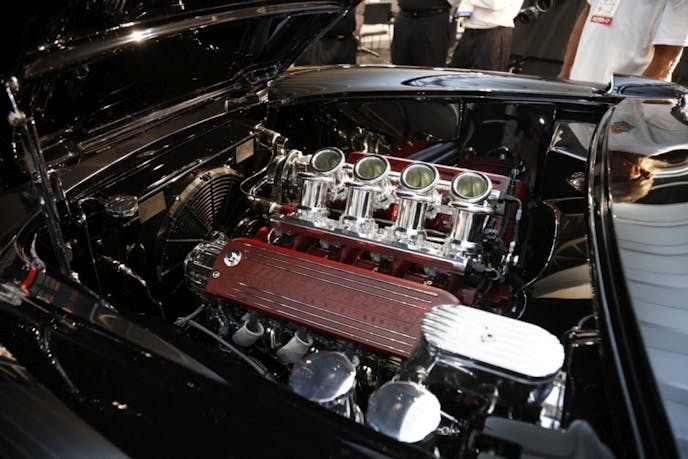 For the interior, Kindig combined longtime collaborator Justin Stephens at JS Custom Interiors and in-house talent Jason Pringle to bring the leather, oxblood cockpit together. They added Vintage Air, an Ididit steering column, Dakota Digital gauges, and a killer Koch steering wheel breathed on heavily via 3-D printing.