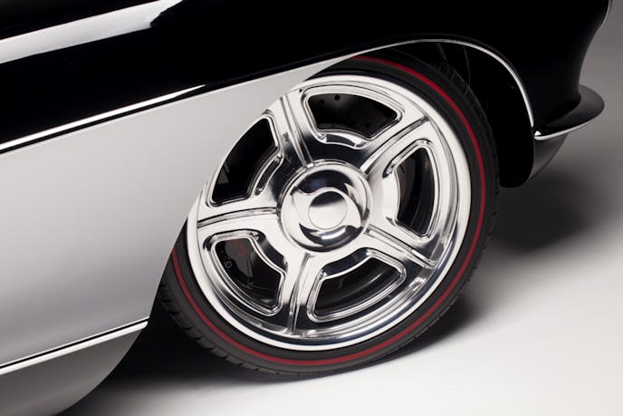 The ‘Vette rolls on custom Billet Specialties Wheels–19s” up front, 20s” in rear–that pay homage to old school Corvette hubcaps with two-bar spinners. Mounted on Michelin Pilot rubber with redline stripes added by Diamond Back Classic tires, the big shoes fit nicely under the old curvy fiberglass with some help from the Art Morrison chassis and 3″ tubbed rear wheels wells.