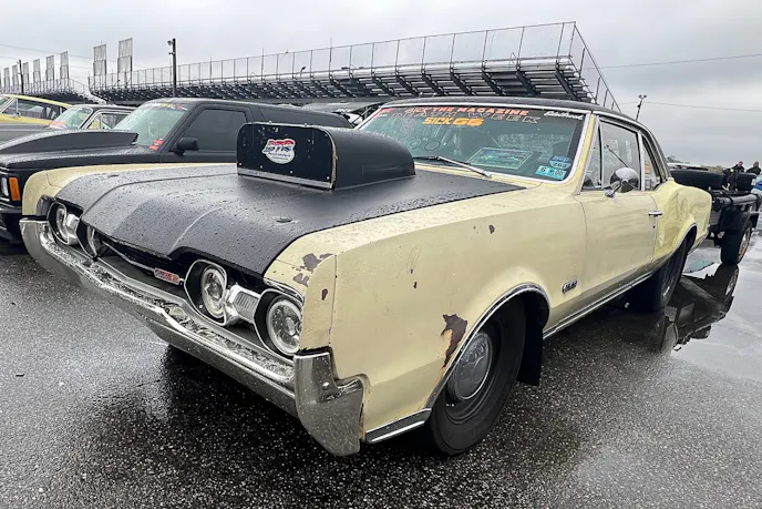 In the spirit of Ransom Ely Oldsmobile, there is 560 cubic inches of Rocket V8 under the hood of this ’67 4-4-2. Built by BTR Performance of Rochester, New York (not to be confused with Kentucky’s Brian Tooley Racing), the engine uses Bill Private-massaged Edelbrock cylinder heads and an Edelbrock intake topped by a CFM Dominator carb. It makes enough horsepower (with the spray) to run 8.70s. The day before our photo shoot, the yellow 4-4-2 went a healthy 8.90 at 152 mph.