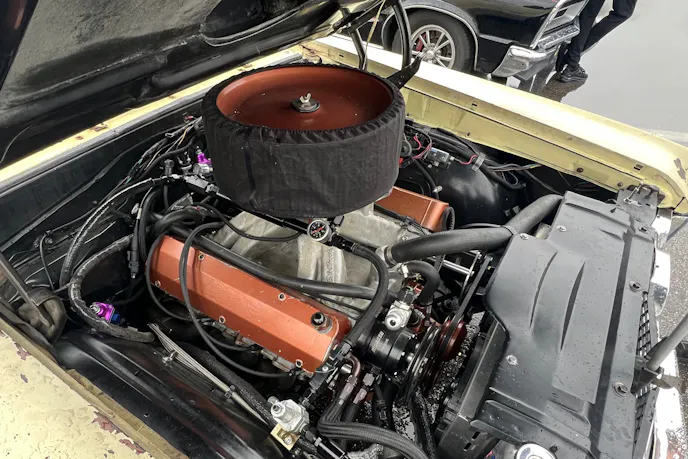 Backing the 560 is a column-shifted Turbo 400 with a Gear Vendors overdrive on the tail, sending the Rocket power to a GM 12-bolt with 3.08 gears. This numerically low ratio means seamless highway cruising. This car still utilizes the factory column shifter and Raj launches off the footbrake.