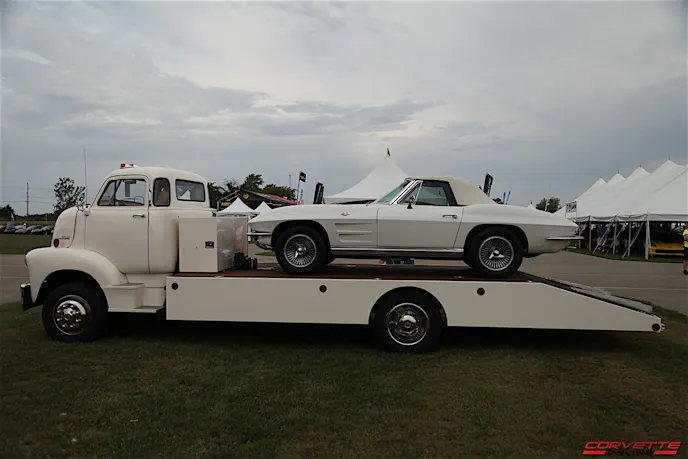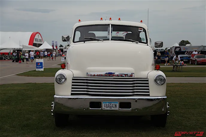In the case of Bob and Leola ‘Lee’ Klosterbuer hauling is exactly half the fun because their tow rig just so happens to be a classic itself; an immaculate ’48 Chevy COE, and their flat bed mounted passenger is an equally magnificent ’64 Corvette that accounts for the other half of the fun.