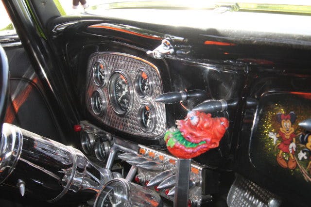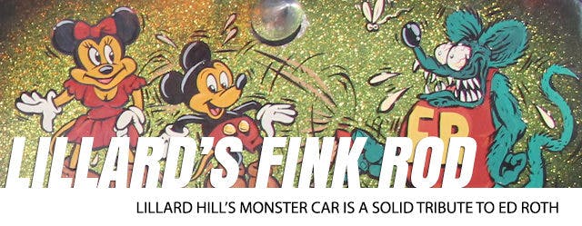 The paint scheme reminded us of a cross between Pete Chapouris’ Limefire, The California Kid, and an Ed Roth build – any of them. In fact, the car is named “Fink Rod” in honor of Ed Roth. “I’ve always been a fan of Big Daddy’s,” said Lillard Hill, the owner and builder of Fink Rod. “I knew I was going to build a rod like this years before I did it.”