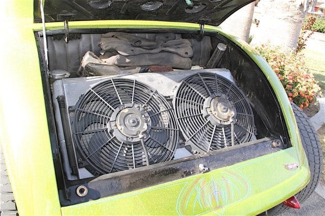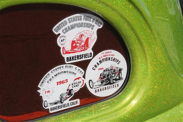 The paint job was done by the late Cliff Patterson, and when the sun is out, the car shimmers and shines so much it is hard to get a photograph that doesn’t have bright reflections. The interior was done by Monaco Upholstery in Bakersfield.