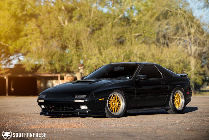 Anderson has always loved Japanese classics and has always been fascinated with the FC chassis. On the outside, the car still retains all the characteristics that make it a classic for Mazda lovers. It has been fitted with a Shine Auto Aero kit, its lowered with Stance GR+ Coilovers, complete with SSR wheels wrapped in Mickey Thompson ET street rubber. Inside, a Nardi Steering wheel is used.