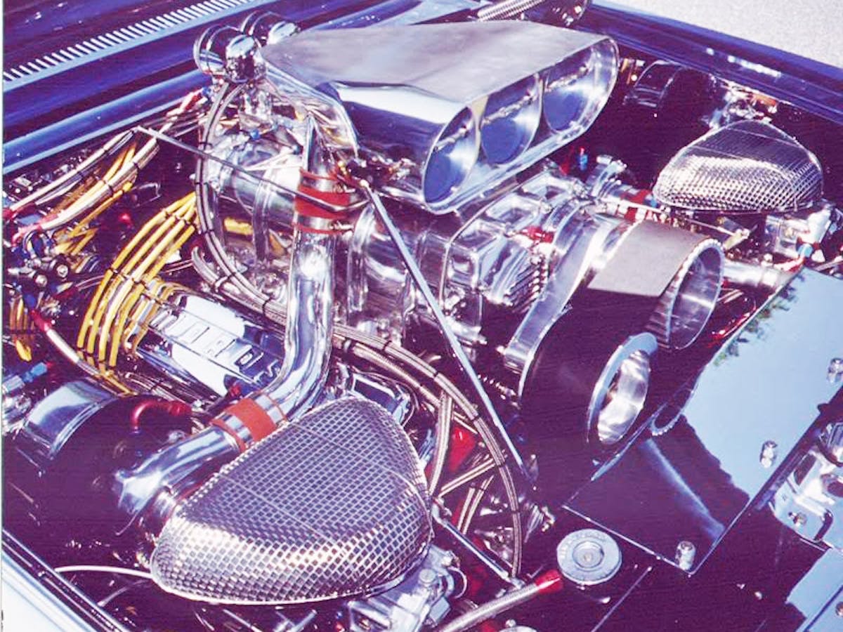 I remember the first time I saw Rick Dobbertin's 65 Nova in the '80's: a big block with dual Holley carbs mounted to a pair of turbos, feeding a 671 blower.