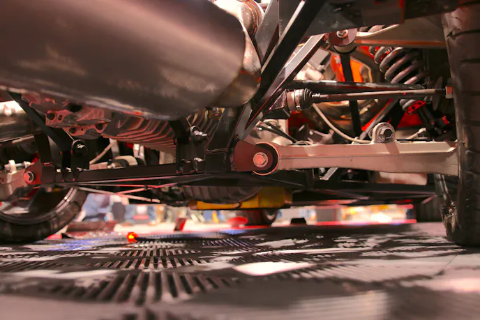 I kept digging for more info, and Mike dove into the technical side of the suspension. As you can imagine, it’s all custom. Outrage sports Corvette control arms and QA1 Mod series coilovers all the way around. Factory Five doesn’t use a sway-bar on either end, but they were must-have items for what Mike had planned, so he crafted one from a Chevette’s sway bar.