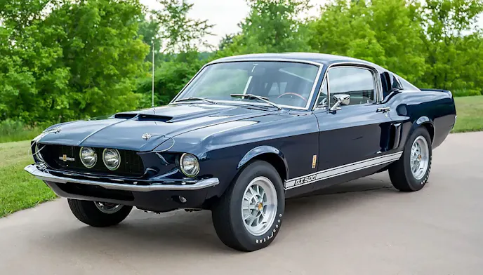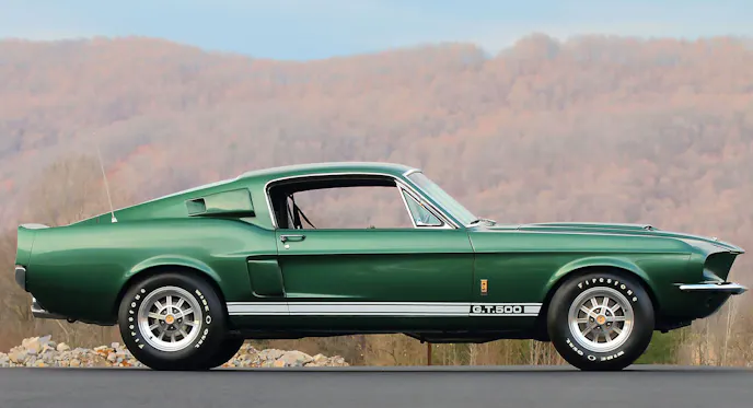 In 1967 though, after Ford had refreshed the Mustang, Shelby took the his concept a step further by adding bespoke fiberglass body parts, including a gorgeous, elongated nose, a hood with twin, functional scoops, four side intakes located at the quarter windows and ahead of the rear wheels, and a tail with an integrated spoiler and sequential taillights borrowed from the Mercury Cougar.