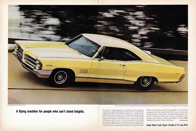 In Canada, big Pontiacs were built on the Chevrolet chassis with Chevy motors and French-Canadian names like Parisienne and Laurentian. Canadians also had a 2+2 but it was like the package America had in 1964 – buckets, console, and trim. These were available with the basic Chevy motors up to full-honking 409s and 427s, with the top motor being a 454 by the time the model was phased out after the 1970 model year. But for a few precious years in the 1960s, Pontiac’s image as America’s performance brand was envied by all other manufacturers (even those within General Motors), and no car had a style/horsepower quotient as large as the 2+2’s.