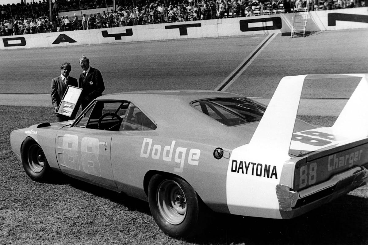 The homologation special hit showrooms in the summer of 1969, shortly before the start of that year’s NASCAR race season. The engineering team’s efforts would prove effective on track, as a Daytona would win its first racing outing at the inaugural Talladega 500 that year and go on to win five more races between the 1969 and 1970 race seasons, while its winged corporate cousin, the Plymouth Superbird, would rack up an additional eight race wins in the 1970 season alone.